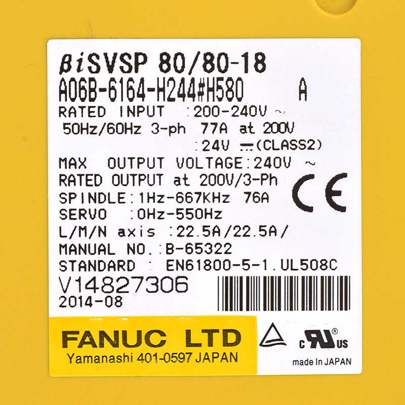 ಫ್ಯಾನಕ್ ಡ್ರೈವ್ಸ್ A06B - 6164 - H244#H580 ಫ್ಯಾನಕ್ BISVSP 80/80 - 18